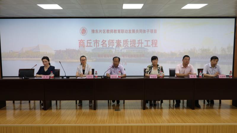 7月16日,河南省豫东片区教师教育联动发展共同体项目“商丘市名师素质提升工程”在我校梁园校区一号教学楼举行。副校长郭文佳,市教育体育局党组成员、副局长冯宇红,教师教育学院院长韩桂玲,教务处副处长孙旭,联动共同体首席专家王启明,教学督导李淑萍等相关领导和来自我校教师教育学院、人文学院、数学与统计学院、外语学院的11名指导老师及全市120名市级名师参加了开班典礼。开班典礼由商丘市教育体育局师训科田莉主持。