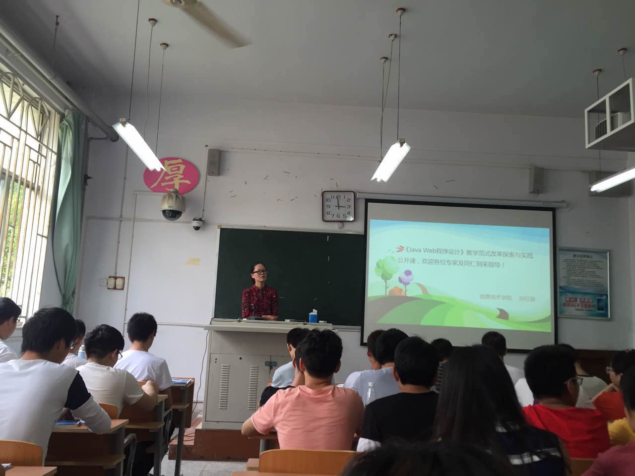 6月4日下午,信息技术学院孙红丽老师的《Java Web程序设计》课程教学范式改革公开在平原路校区综合楼112教室举行。校教学督导员李淑萍教授、信息技术学院院长菅典兵、副院长李海涛、副院长方莹和本院十几位老师共同参加了公开课观摩活动。