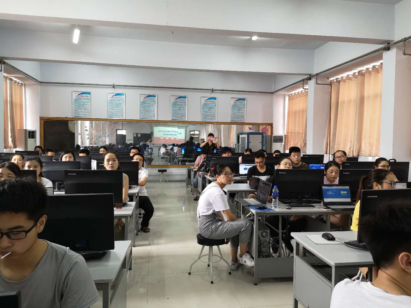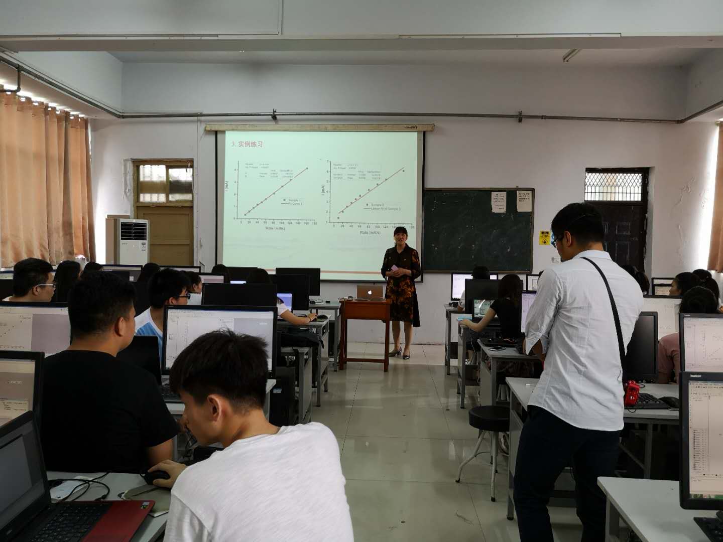 6月28日上午第三节,化学化工学院王科峰老师的《计算机在化学中应用》范式改革公开课在文化路校区音乐楼三楼机房举行。李淑萍教授、化学化工学院副院长孟团结和部分教师参加了教学范式改革观摩教学。